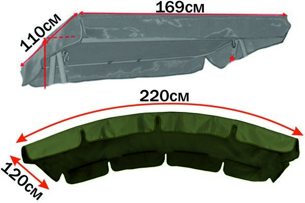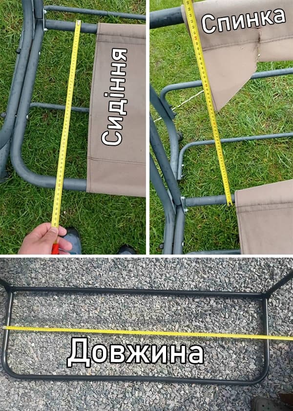 Увага!!! Міряти потрібно не саму тканину, а металевий каркас по зовні, як показано нижче на фото. Якщо ви не впевнені в своїх замірах, надішліть нам свою стару тканину (доставку оплачуєте ви), або скиньте фото гойдалки на Viber +38 (096) 021-82-22 щоб ми підказали як правильно зробити заміри.